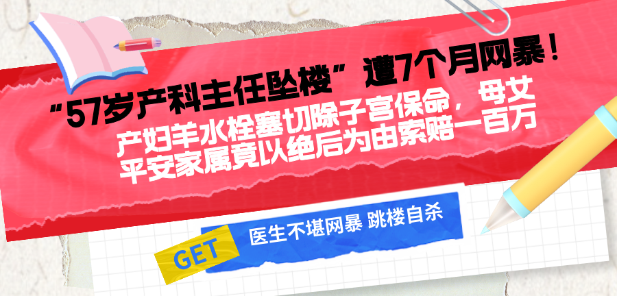 “57岁产科主任坠楼”遭7个月网暴!产妇因羊水栓塞切除子宫后家属竟因为生下女孩觉得绝后要求赔偿100万!!!